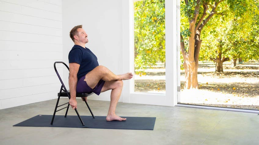 And I want you to reach forward through the legs, through the feet, through the toes. Just creating a little extra space here and the sacrum and the pelvis. Take a few more breaths. And then let the legs relax. Bring your feet to the edge of the seats.