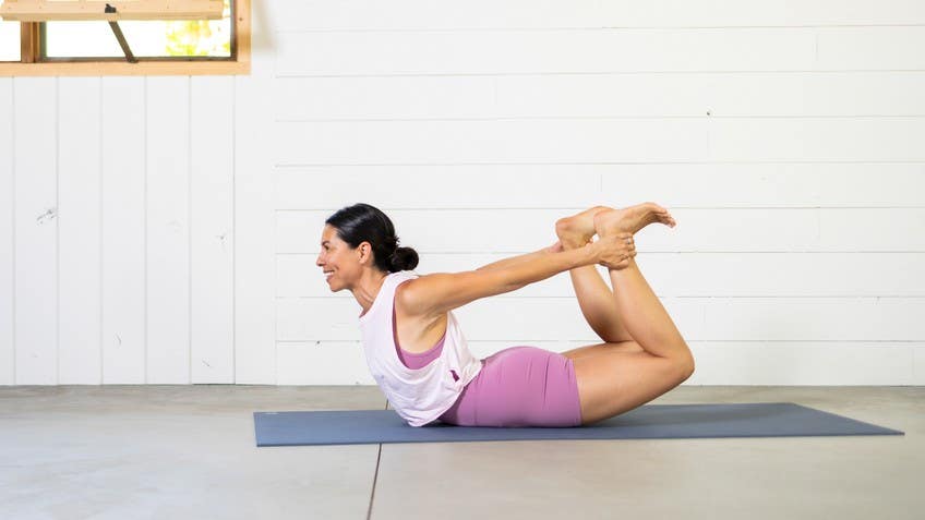 We're gonna go into Shalmbasana So to making sure you're at the tops of the feet pressed down, you wanna also elongate through your legs, especially the inner legs, firm your outer ankles in. When you're ready, lift your chest. Lift your arms. Keep your feet down for this one. Keep your lower back long so your glutes, your tailbone Reaching for your heels in hell here.